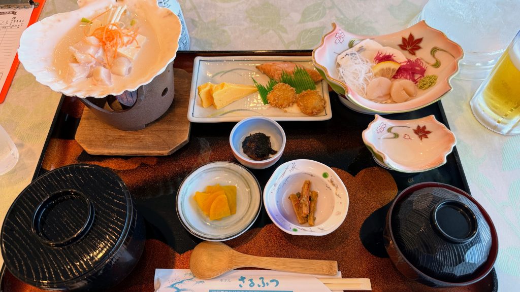 晩ご飯には帆立尽くしのメニューをいただきました。美味。