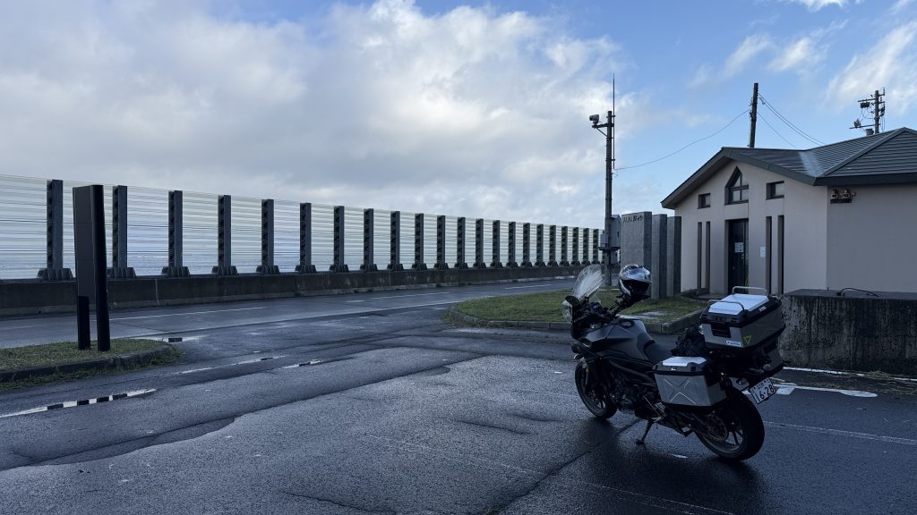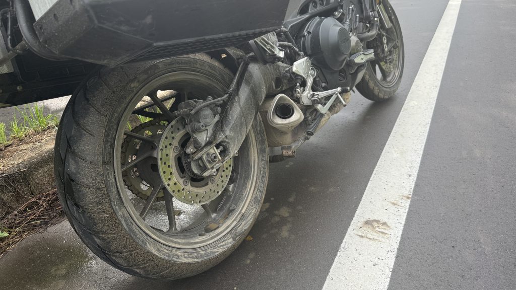 苫前の道は所々冠水していたので、初日にしてバイクはドロドロに。